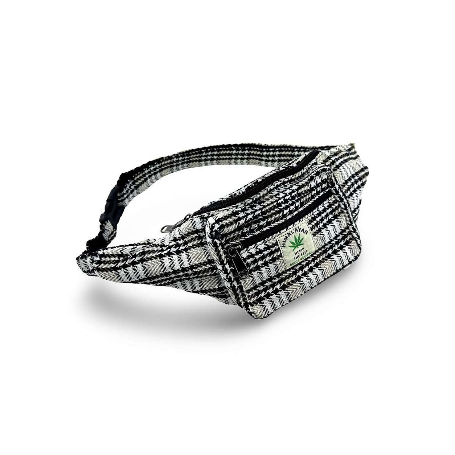 Bolsa de cintura artesanal de cânhamo Branco e Preto | Himalayan